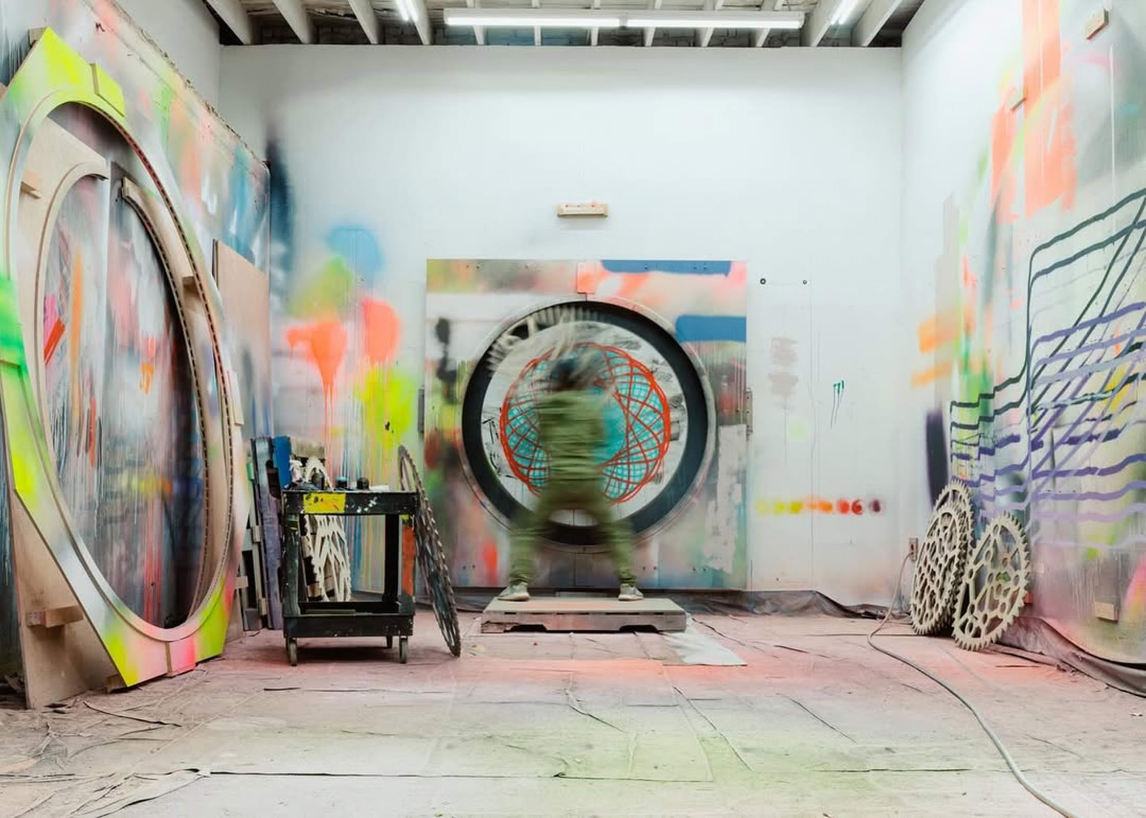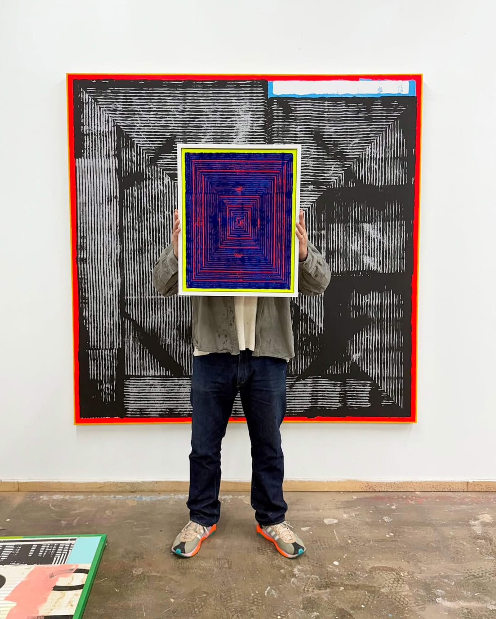 Dabei lässt er sich nicht auf seinen frühen Erfolg festlegen. Elemente aus dem Graffiti fließen weiterhin in seine Arbeiten ein – etwa einfache Materialien, industrielle Werkzeuge oder ein gewisser improvisatorischer Ansatz. Gleichzeitig hat sich seine Praxis klar in Richtung Minimalismus und postmalerischer Abstraktion entwickelt.