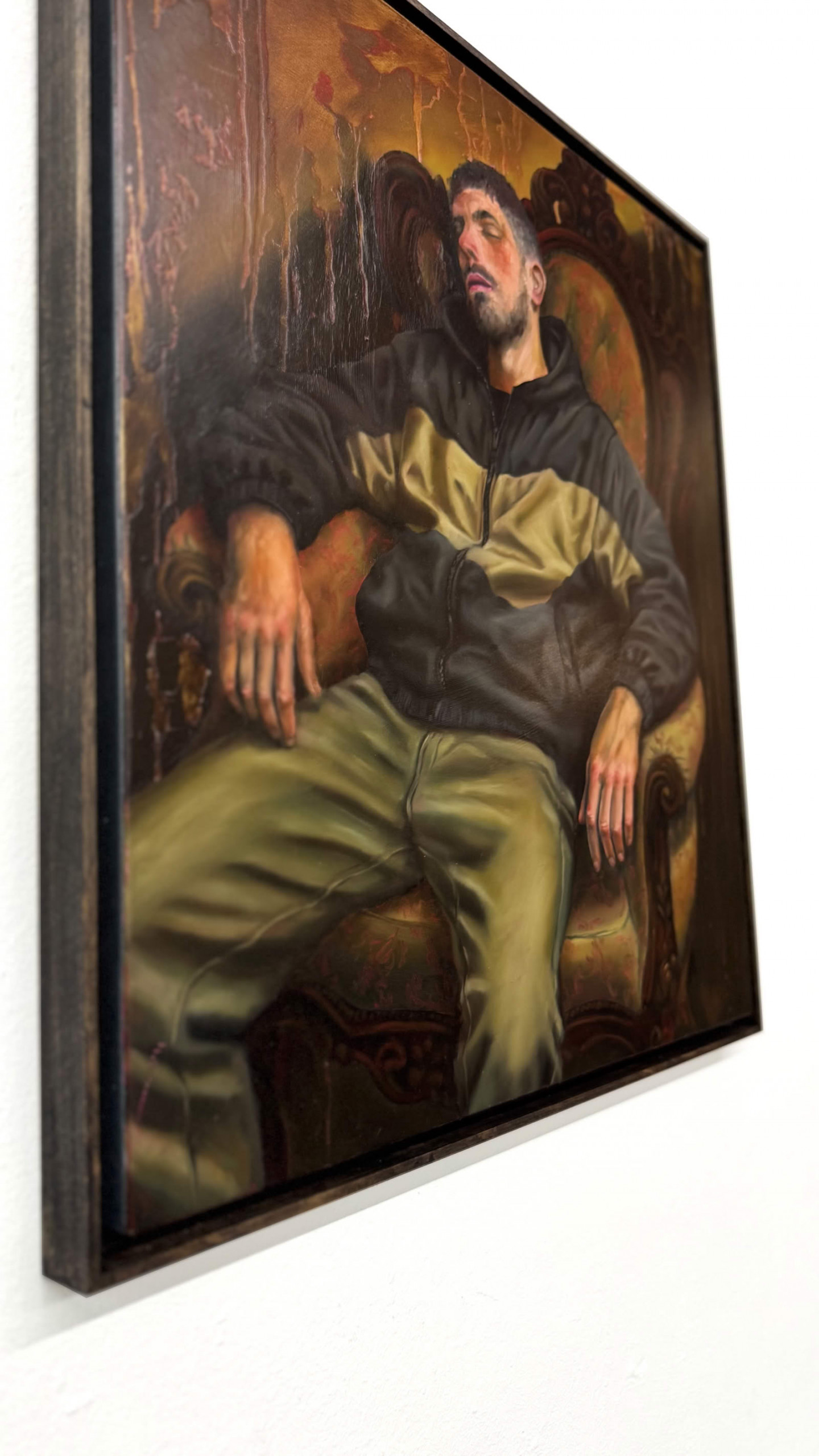 Franz Werk arbeitet an der Schnittstelle zwischen klassischer Malerei und urbaner Gegenwart. Seine Bilder entstehen auf Metall – meist Aluminium oder Edelstahl – und verbinden traditionelle
